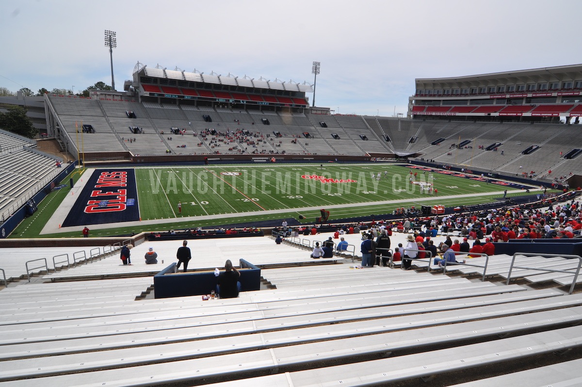 A view of Hollingsworth Field within section H of Vaught-Hemingway Stadium, home of Ole Miss Rebel football.