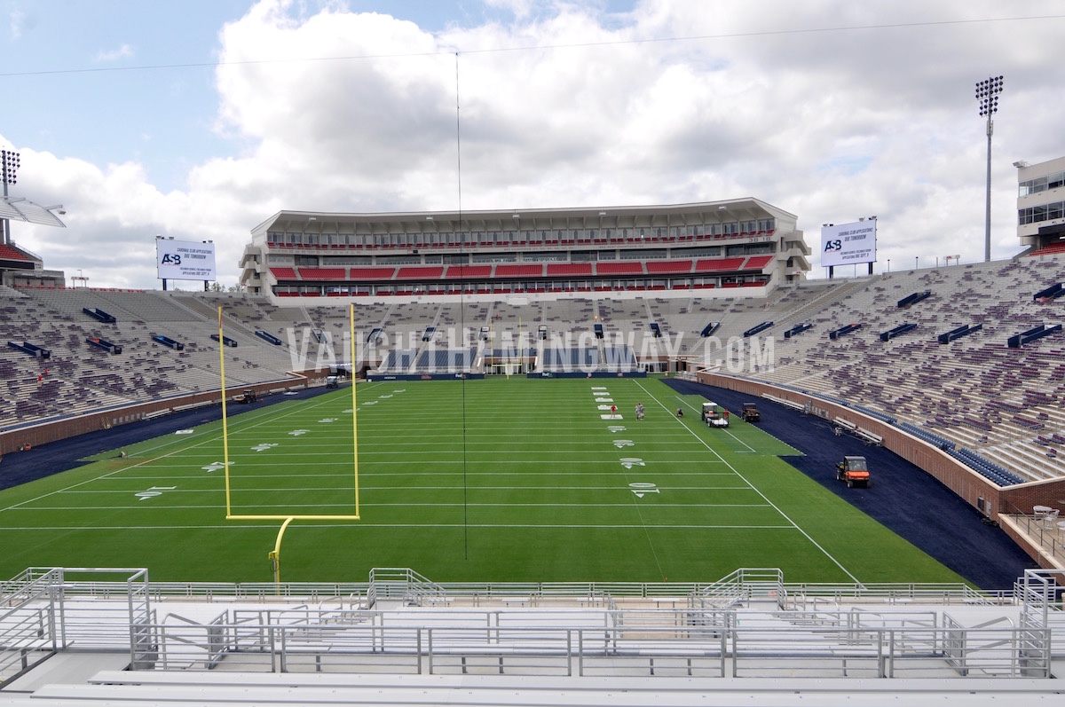 A view of Hollingsworth Field within section N5 of Vaught-Hemingway Stadium, home of Ole Miss Rebel football.
